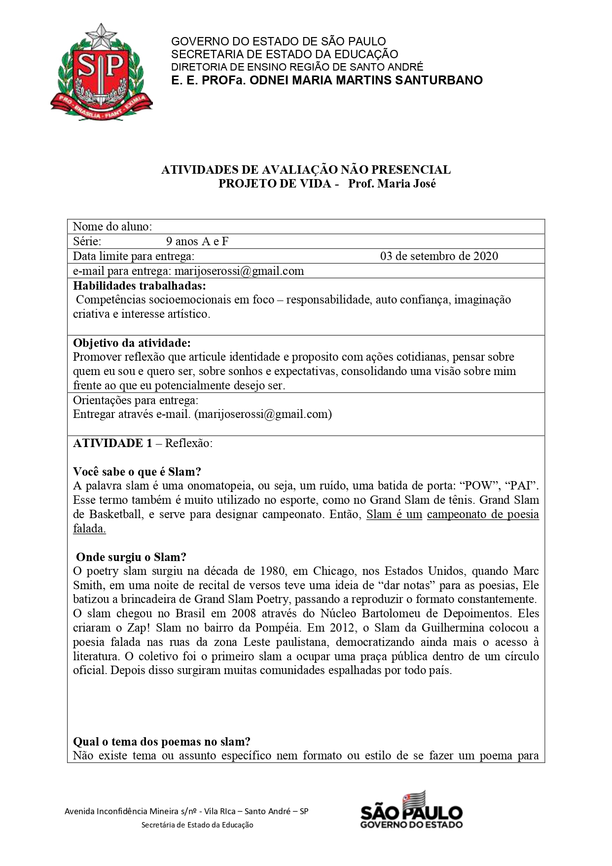 3ª série A - Ensino Médio: PROJETO DE VIDA-DEFININDO PLANOS- 03/08/2020