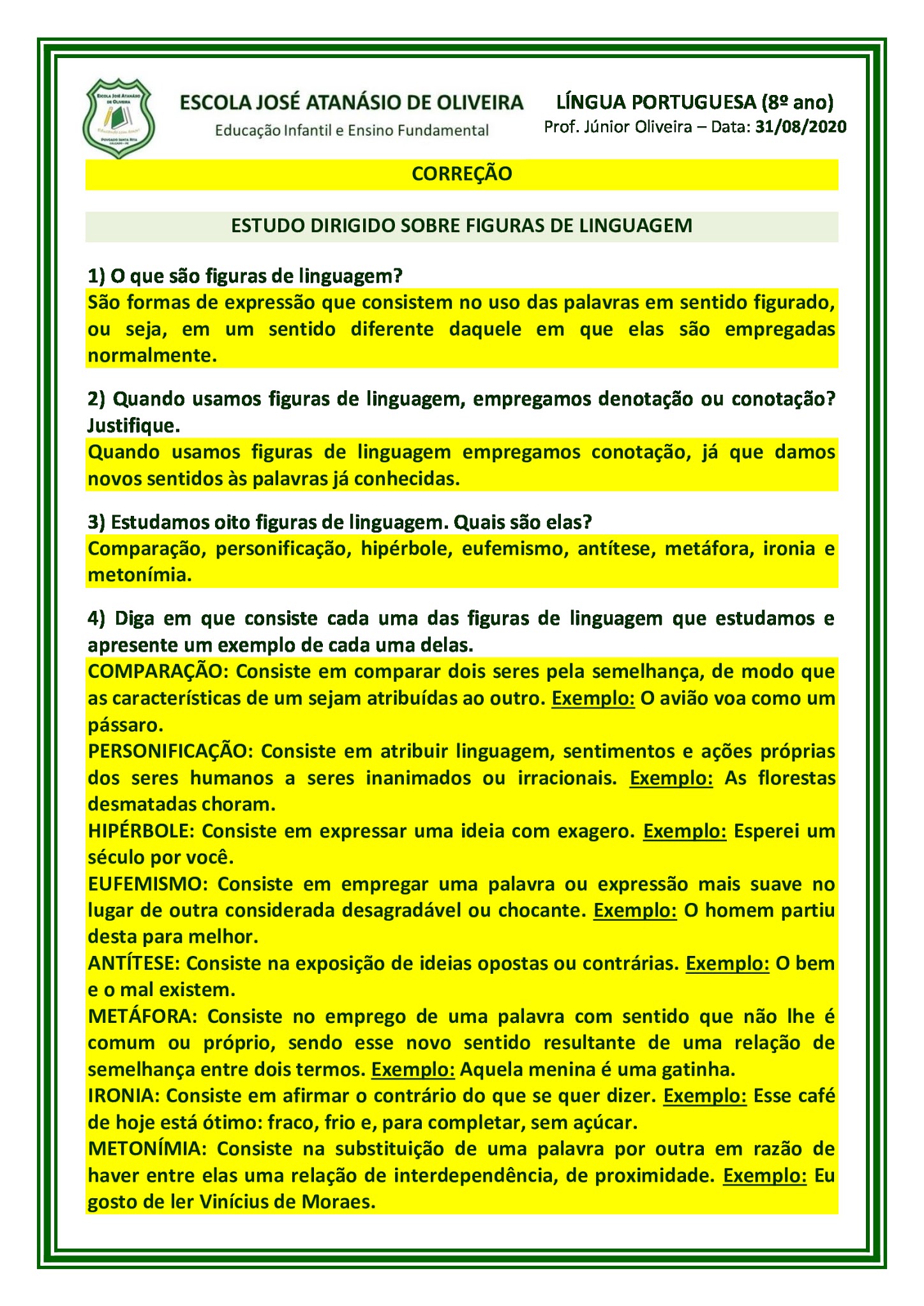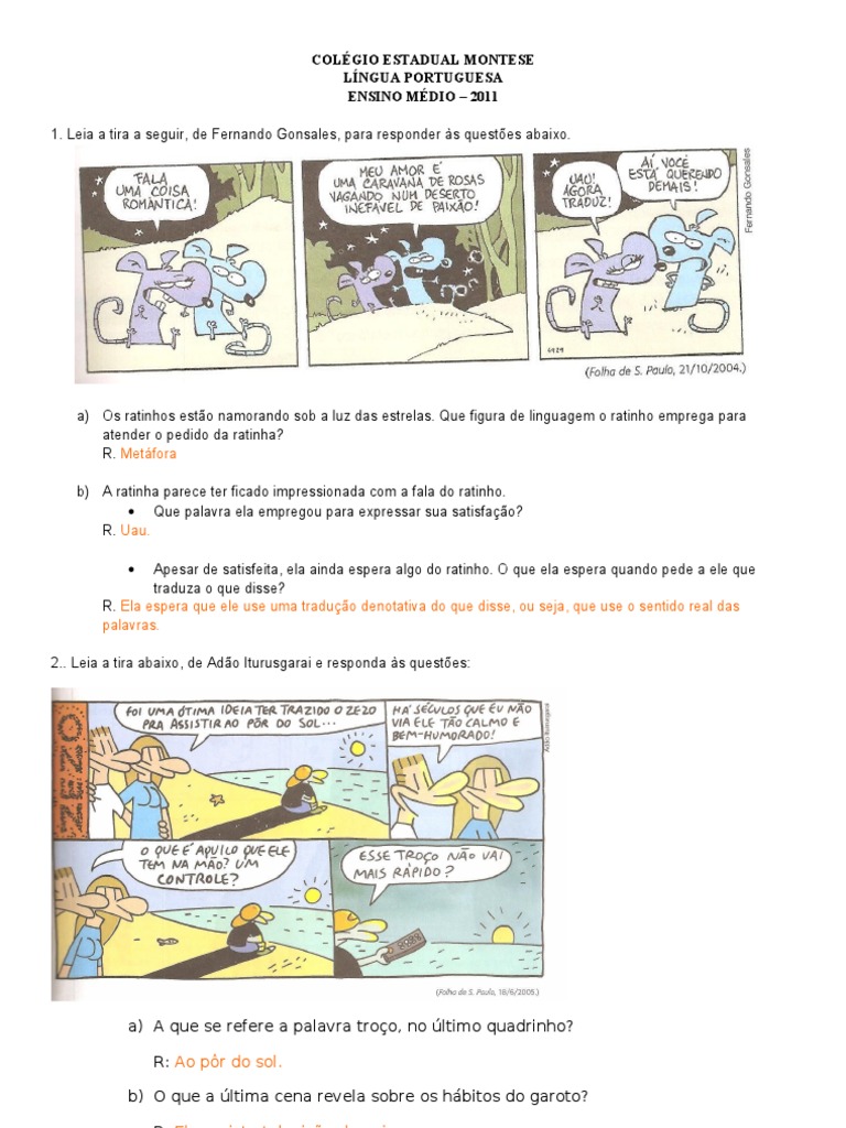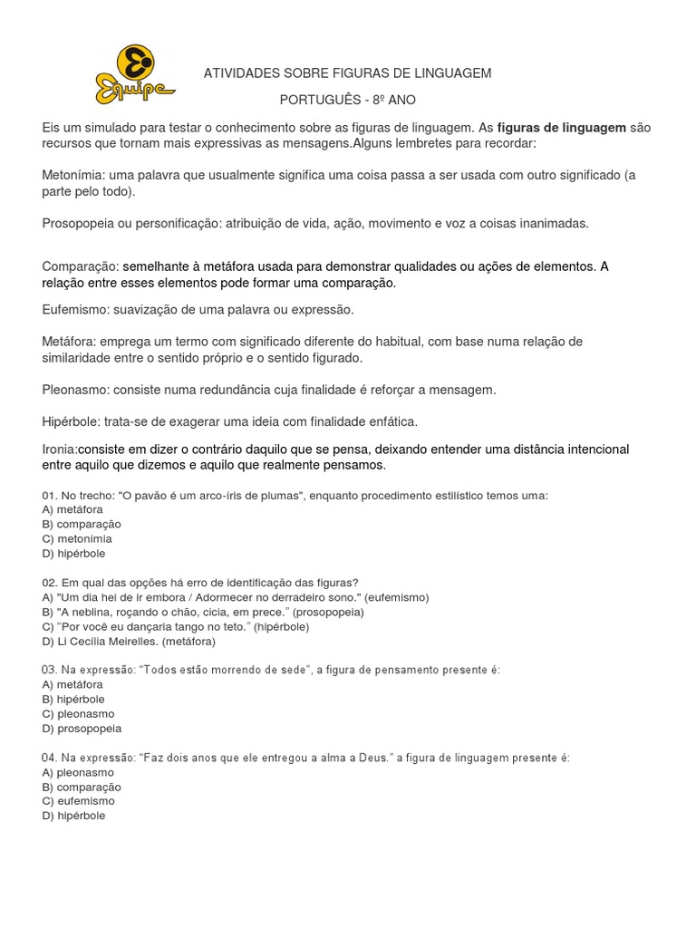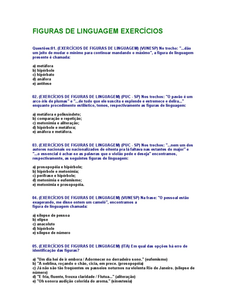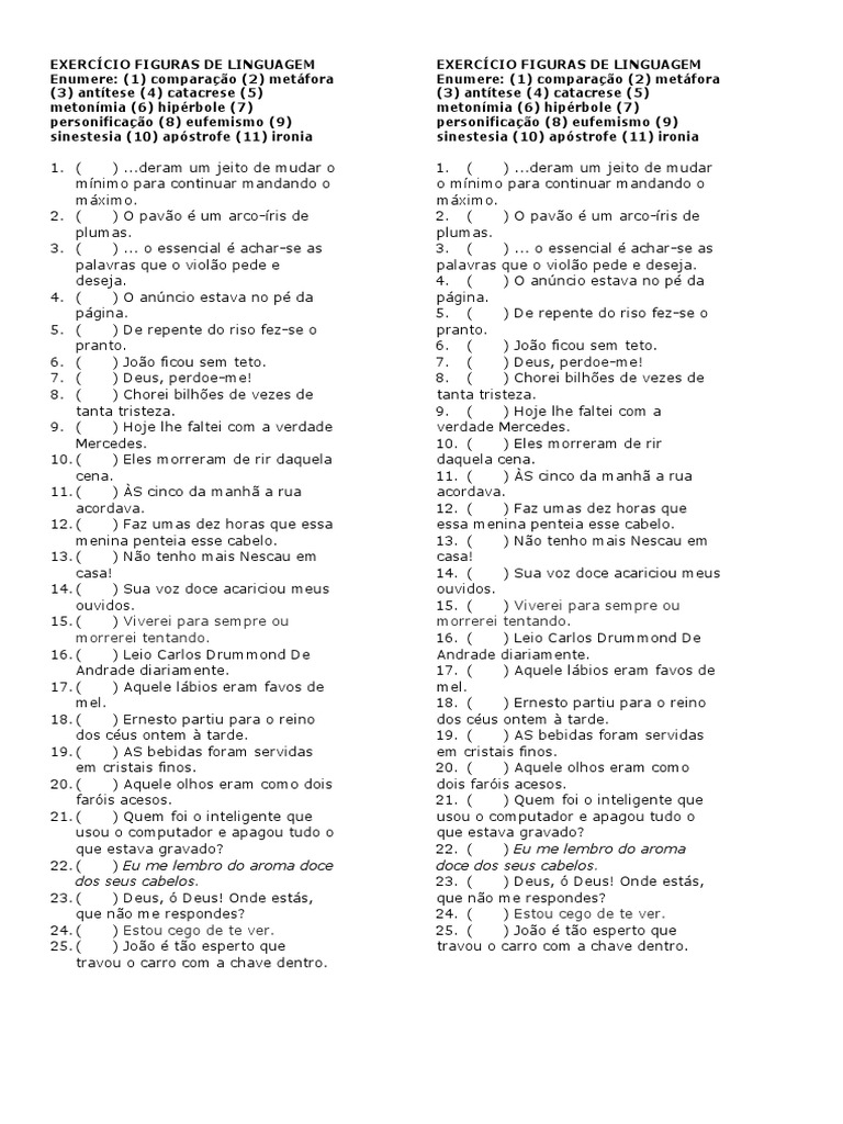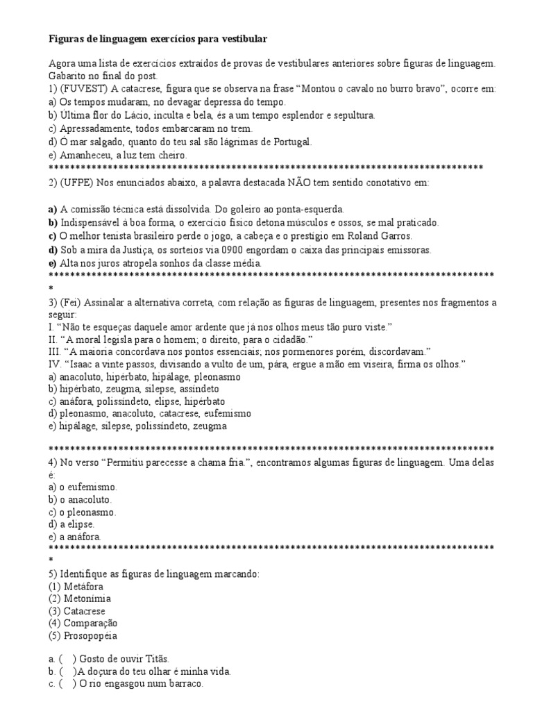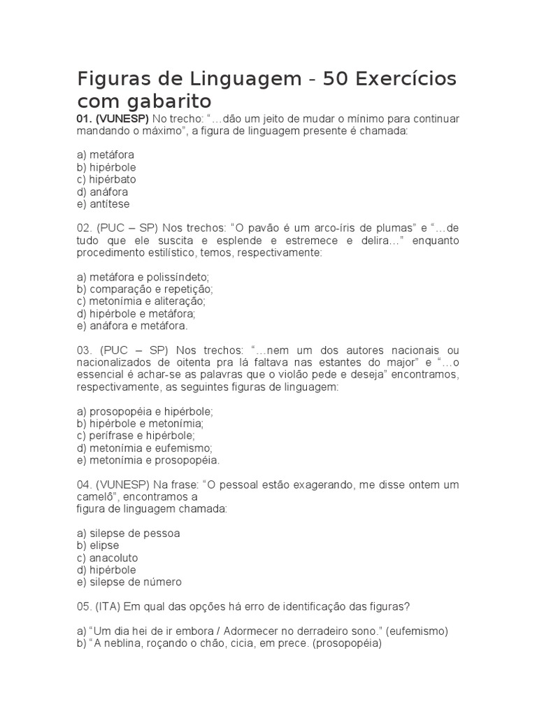 Exercícios De Figuras De Linguagem Pdf Com Gabarito. .