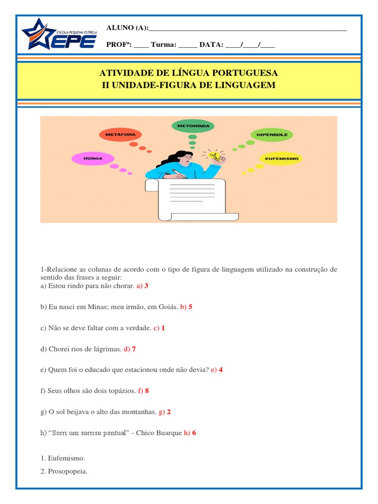 Atividade Figuras De Linguagem 7 Ano Com Gabarito - EDUCA