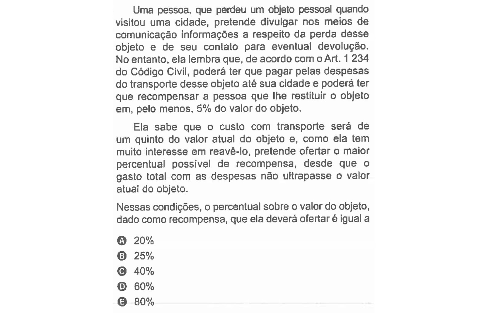 [ENEM 2019] 138 📘 PORCENTAGEM Uma pessoa, que perdeu um objeto pessoal